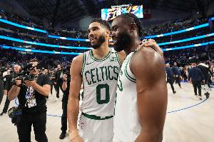 “当我们开始讨论塔图姆回归阵容的话题时,同样的剧本又上演了。但杰伦·布朗和塔图姆心里都清楚:我能带队取胜。他们以团队的方式实现胜利,从不纠结谁是老大、谁更出色这些问题。不,他们只是全力以赴,在球场上呈现最好的表现。所以说,觉得塔图姆归队会破坏球队化学反应的说法,根本站不住脚,这都只是外界的无稽之谈而已。”