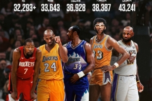 谈到自己生涯总得分超越迈克尔·乔丹,上升至NBA历史第五,杜兰特笑着说道:“我还有四人需要去超越。”