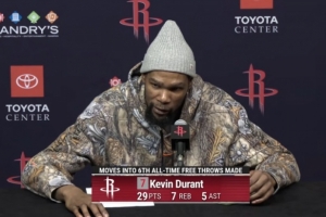 体育资讯4月10日讯 NBA常规赛,火箭113-102战胜76人。赛后,火箭球星杜兰特接受了采访。以下是采访全文。