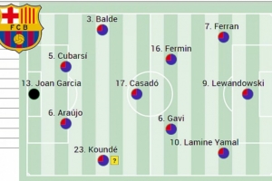 前锋:费兰·托雷斯、莱万、亚马尔